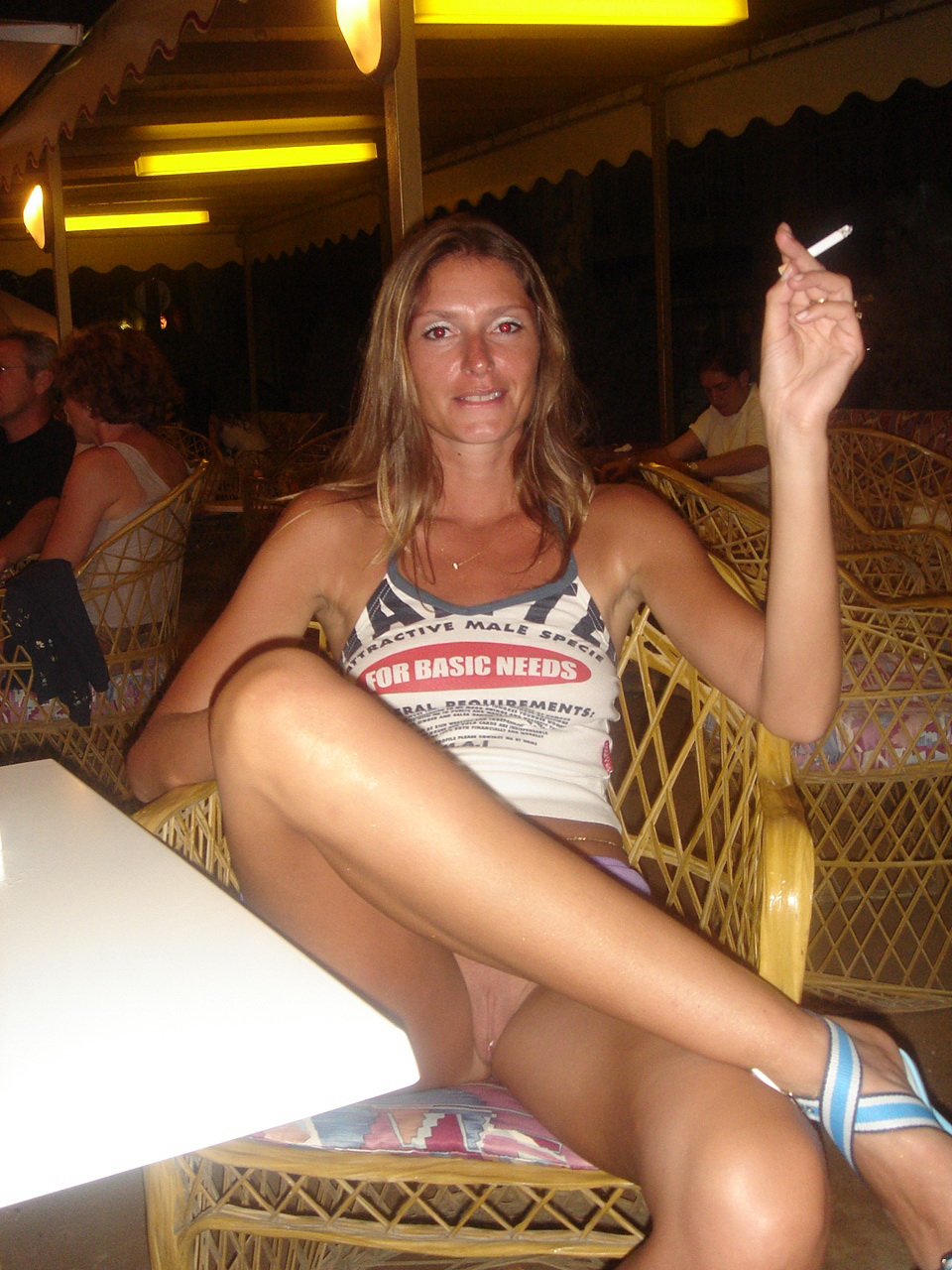 Sa main gauche glisse sur ma cuisse. Timide d’abord. Puis ferme sur mon cul. Je souris sous le masque. Main droite dérive vers sa bosse. Il bande dur. Cuir de sa ceinture craque sous mes doigts. Je caresse la longueur. Gros. Chaud. Boules lourdes. Il ose : main sous mon débardeur. Seins ronds, tétons durs comme cailloux. Il pince. Je gémis bas, musique couvre tout. Son copain ? Focalisé sur la scène, main dans la mienne. Parfait.
